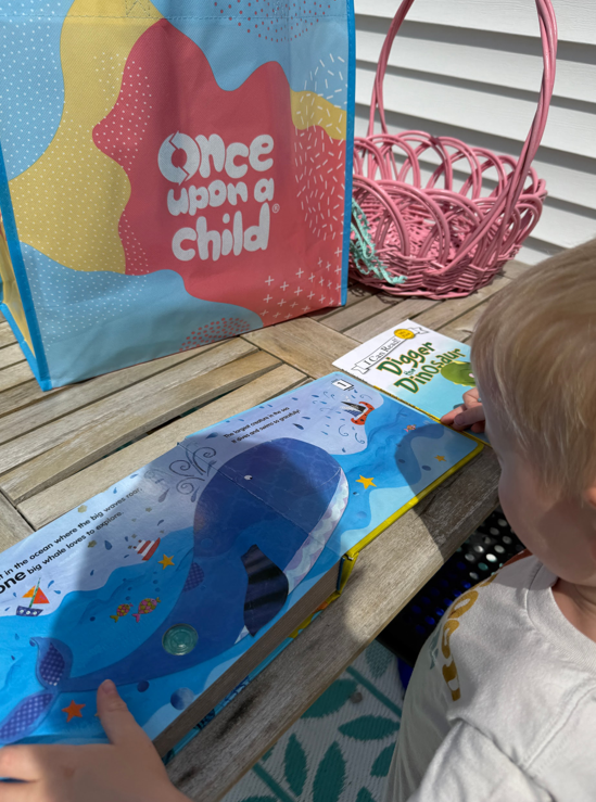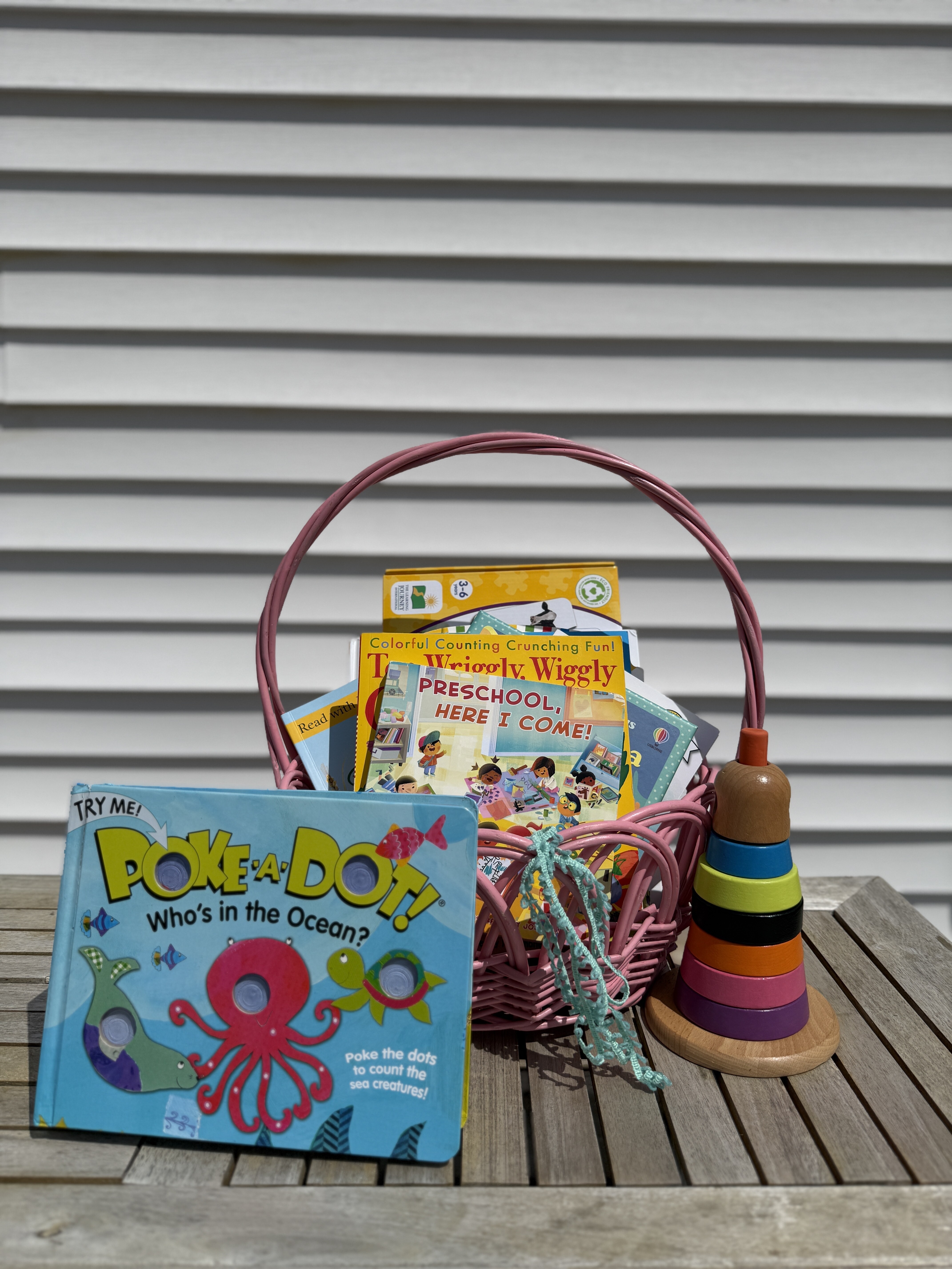 I had a ton of fun putting this basket together. And it t was so easy to shop around Once Upon A Child for things I thought the kids would love and teachers would appreciate! I filled this basket with picture books, puzzles, matching games, and toys. Everything in total was only $15!